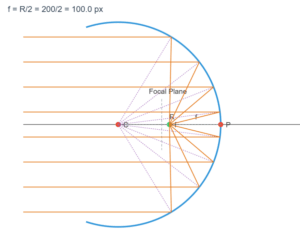 Spherical Mirror Focal Length Simulation Spherical Mirror Focal Length Mirror Properties Radius (R): Current: 300 px Aperture: Current: 150 px
