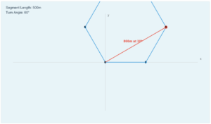 Motorist Hexagonal Path Simulation Motorist Hexagonal Path Simulation Segment Length (m) 500 m Turn Angle (degrees) 60° Animate Path Reset