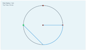 Cyclist Circular Park Simulation Cyclist Circular Park Simulation Round Trip Time (minutes) 10 min Park Radius (km) 1 km Start