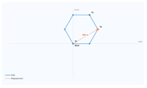 Displacement vs Distance Simulation – Hexagonal Path Displacement vs Distance: Hexagonal Path This simulation illustrates the fundamental difference between distance