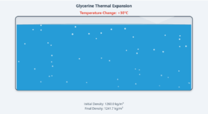 Thermodynamic Properties of Glycerine | Density Simulation Glycerine Density-Temperature Relationship Interactive simulation of volumetric thermal expansion Temperature Change (ΔT) 30°C