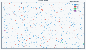 Air Molecules Simulation Air Molecules in a Room Simulation This simulation visualizes the approximately 6.11 × 10²⁶ air molecules in