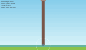 Tower Physics Simulation Tower Physics Simulation Tower Height (m) 50m 300m 500m Speed of Sound (m/s) 100m/s 340m/s 500m/s Gravity