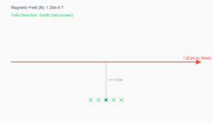 Magnetic Field from Current-Carrying Wire Magnetic Field from Current-Carrying Wire Current (A): Value: 90 A Distance Below Wire (m): Value: