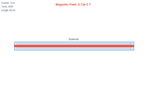 Solenoid Magnetic Field Simulation Solenoid Magnetic Field Simulation Current (A): Value: 8.0 A Number of Turns: Value: 2000 Length (cm):