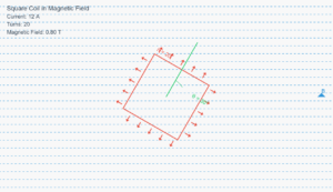 Magnetic Torque on a Square Coil Magnetic Torque on a Square Coil Current (A): 12 Number of Turns: 20 Angle