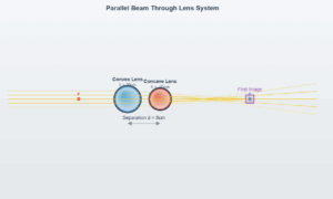 Two-Lens Optical System Simulation Two-Lens Optical System Simulation Parallel Beam Object at 40cm Convex Lens (f₁) 30 cm Concave Lens