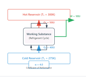 Refrigerators and Heat Pumps Refrigerators and Heat Pumps Thermodynamic Cycle Visualization Hot Reservoir (T₁ = 300K) Cold Reservoir (T₂ = […]